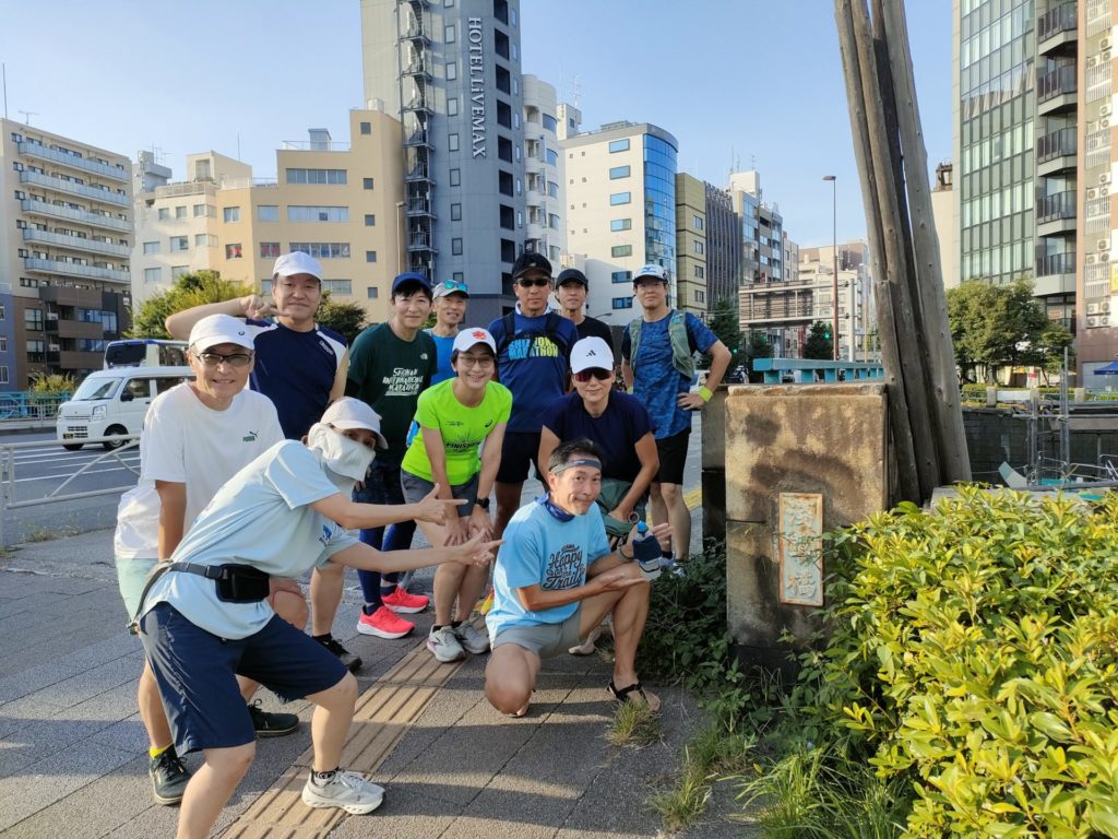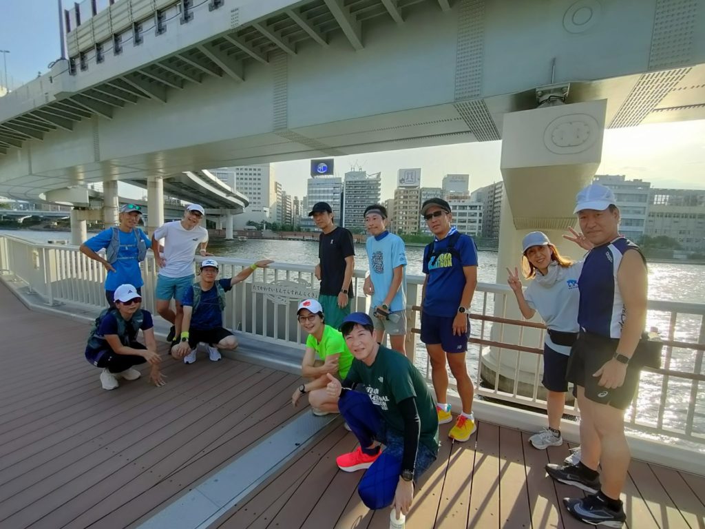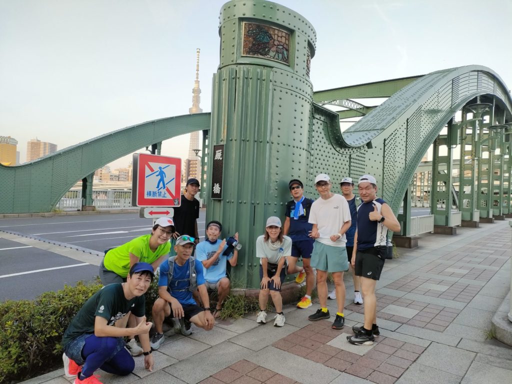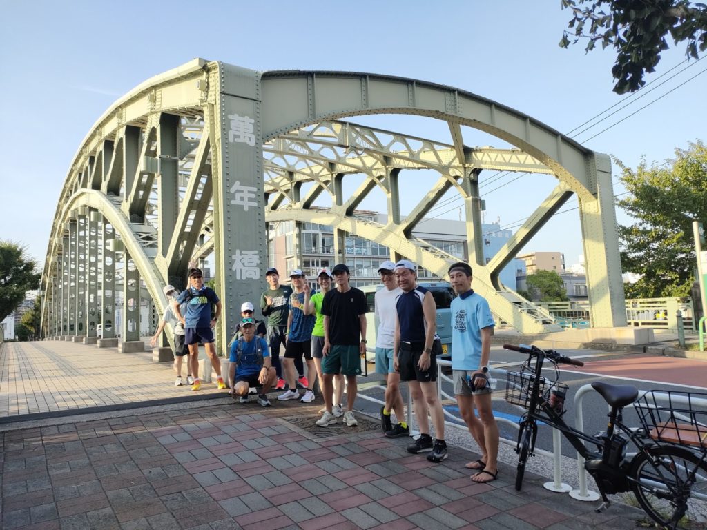 練習会終盤、品走メンバーは何故か大幅なペースアップ、川沿いの涼しい風を感じながら浅草橋にゴールしました。
