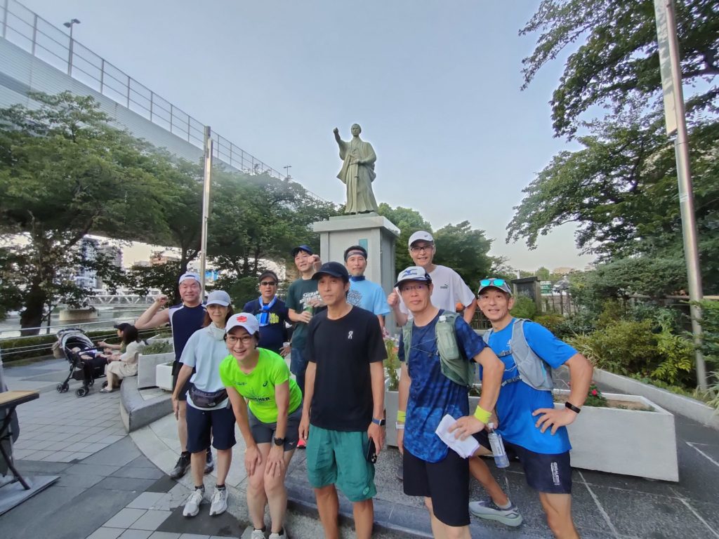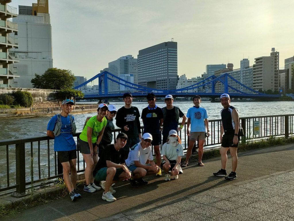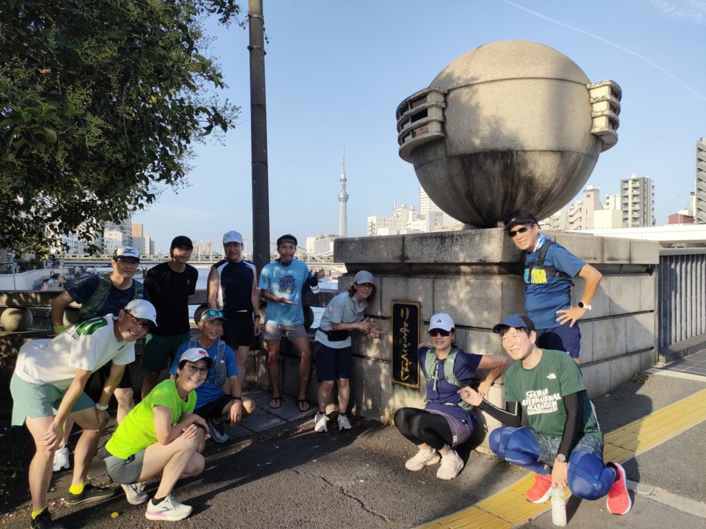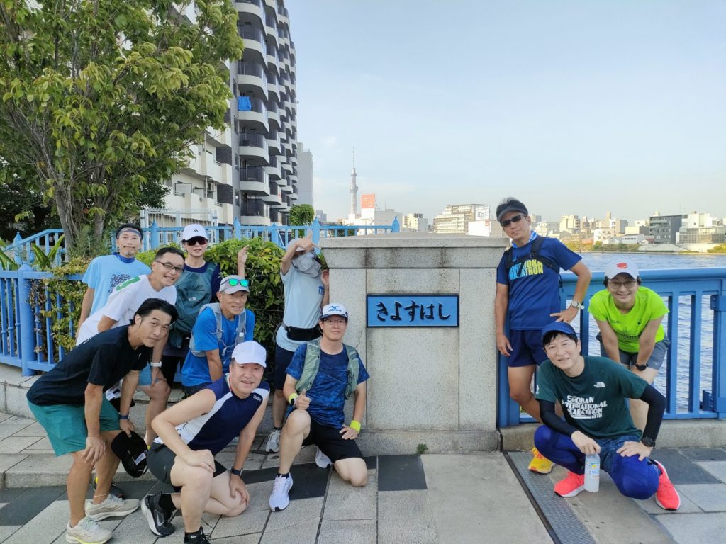 練習会終盤、品走メンバーは何故か大幅なペースアップ、川沿いの涼しい風を感じながら浅草橋にゴールしました。