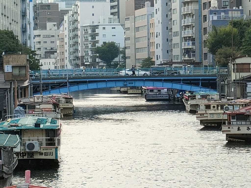 体験参加の方を含む12名が浅草橋駅に集合、先ずは浅草橋。準備体操場に向かう途中なので歩いて渡りました。
