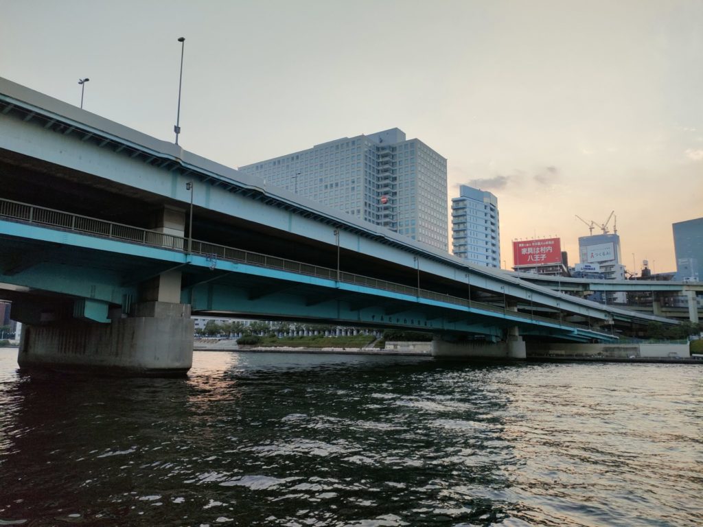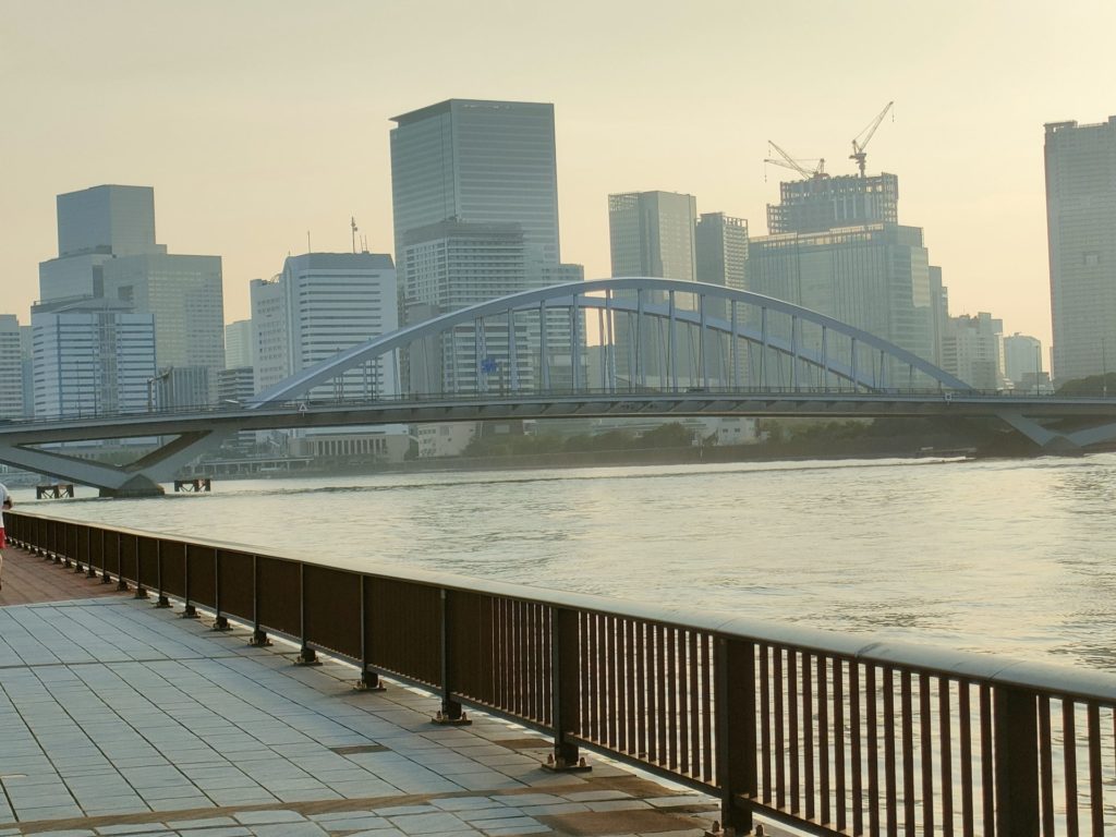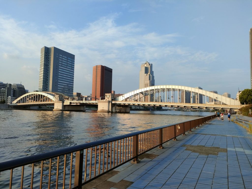 今回は前回の続編で夕方の隅田川テラスの下流側を走りました。