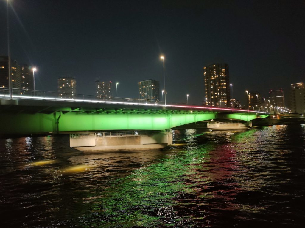 前回と同じような時間を走ったのですが、一週間違うと日の入り時間も早くなったようで、綺麗にライトアップされた佃大橋が見られました。
