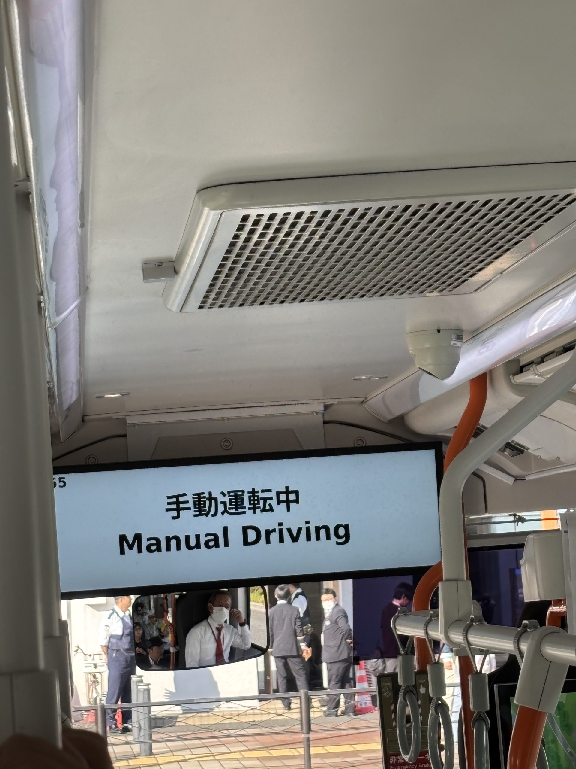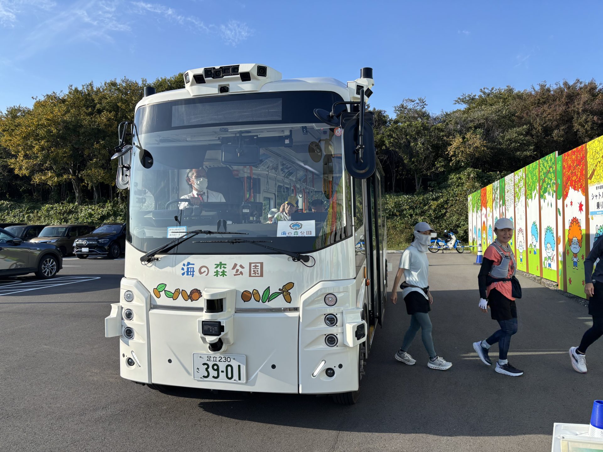 まずは新木場からシャトルバスに乗って海の森公園に向かいます。このバス、本来は自動運転バスなのですが、春頃にあった全然関係ない自動運転バスの事故の影響で、今は手動運転になってました。