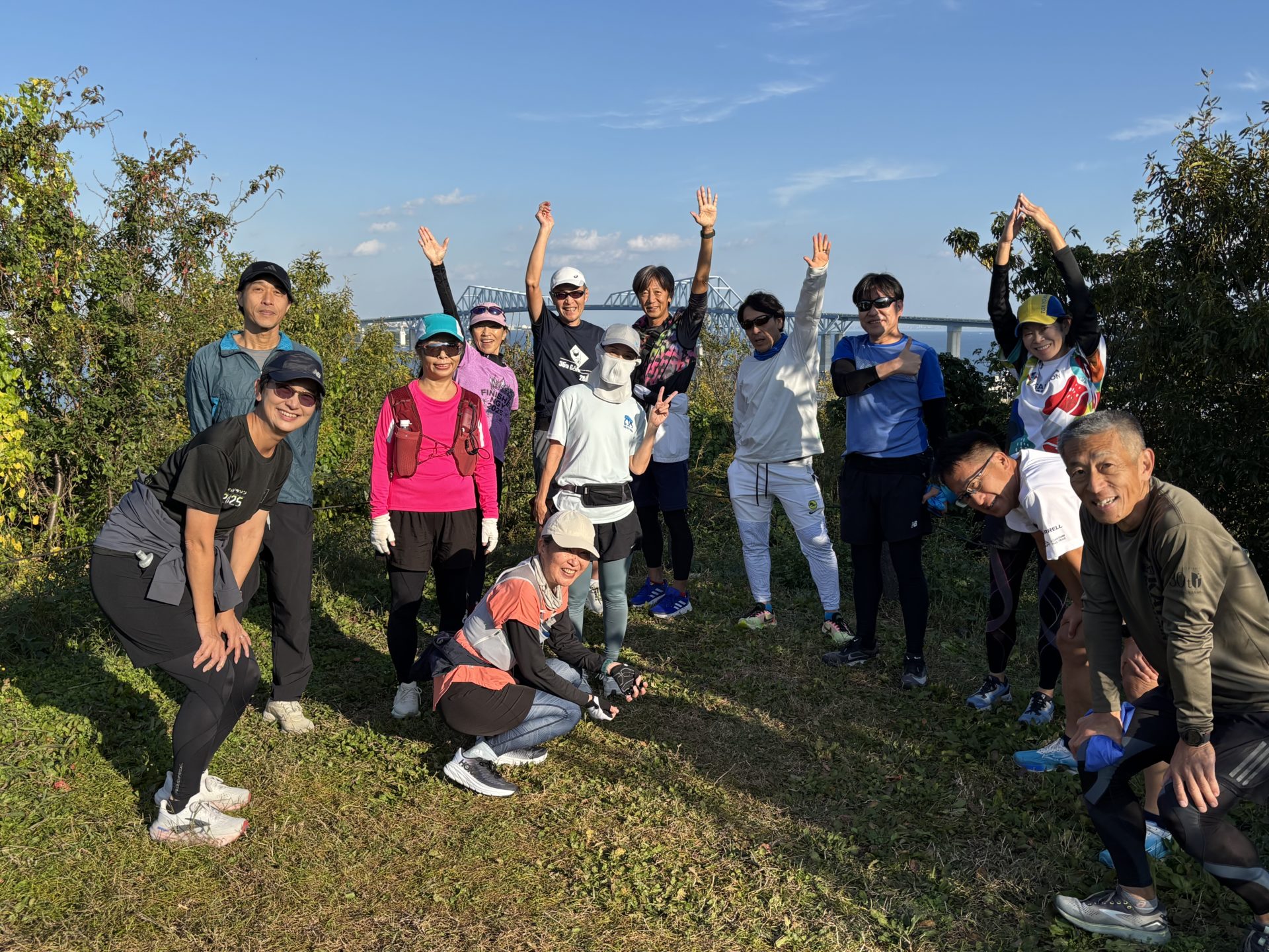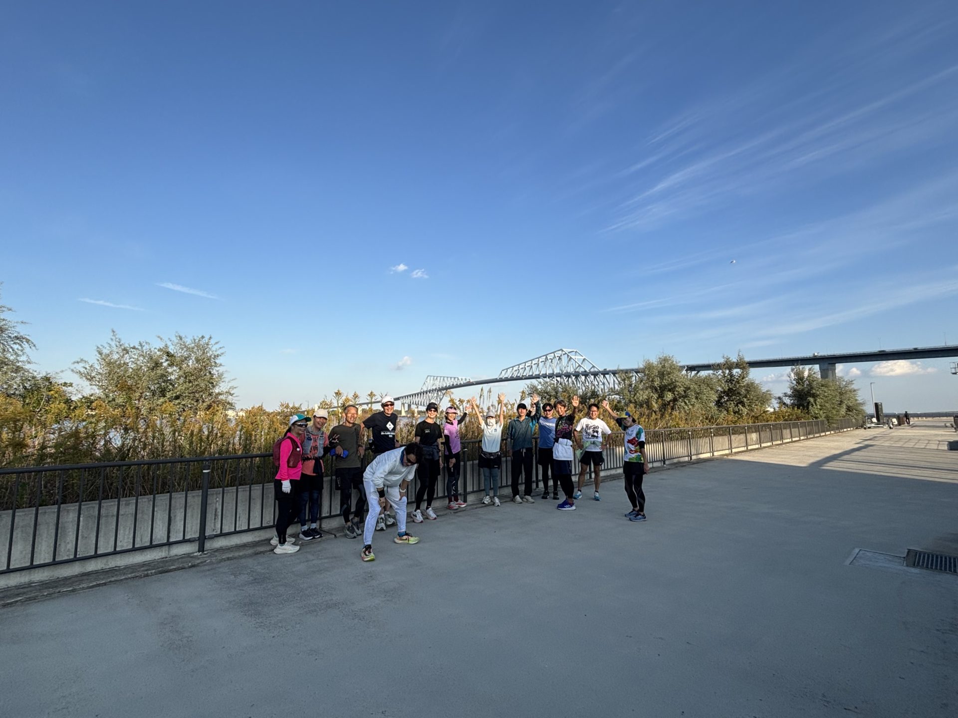 今回は、5月に実施した「中央防波堤に上陸して海の森を走る」練習会のリベンジ企画でした。5月の練習会はかなりの強風と豪雨の中で強行したのですが、景色も見えずゲートブリッジにも上がれない悔しい内容となってしまいました。ならばということで10月に同じコースを企画したのですが、また雨が降って中止となってしまいました。なんとしても海の森公園の景色を見てゲートブリッジを渡りたく、三度目の正直ということで挑戦したのが今回でした。