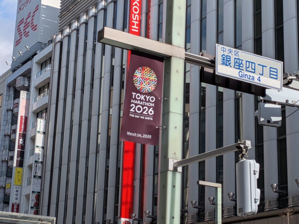 銀座四丁目の交差点にはいつも通り大会フラッグが掲げられていて、SEIKO HOUSEショーウィンドウには、運よく大会に参加できる全ランナーの名前がGO!の応援メッセージと共に掲載されていました。3/2まで掲載されているようなので、まだ見ていない方、見に行って下さい。