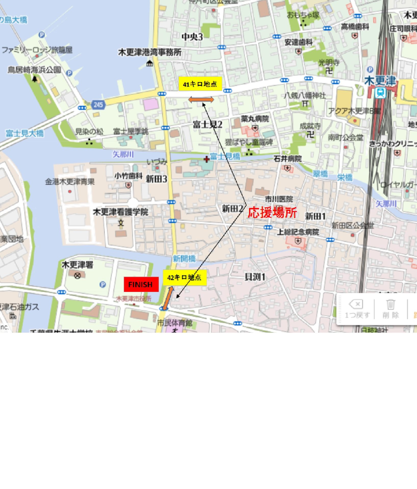 ②FINISH近くの42km地点、そこが混んでいれば41Km地点にて応援します。