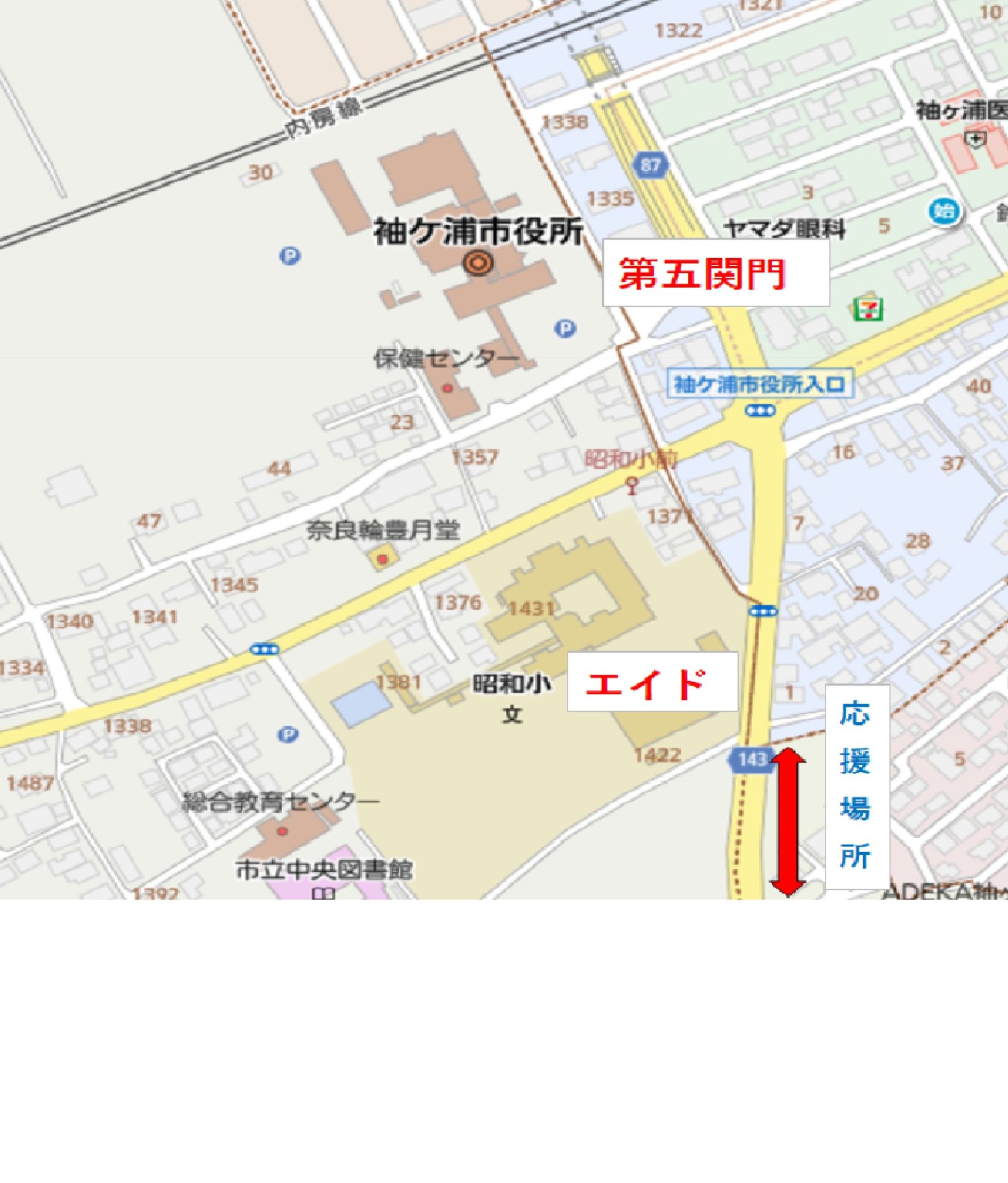 応援の場所は下記通りです。